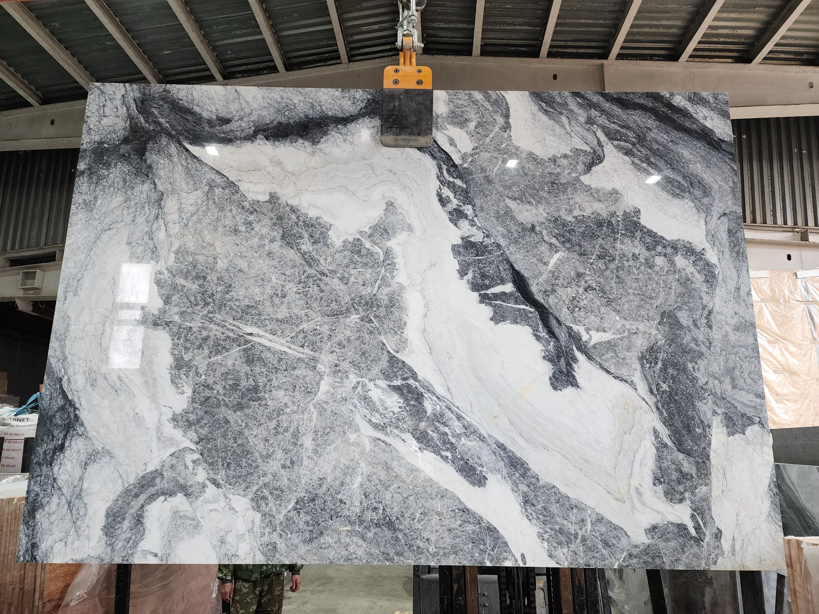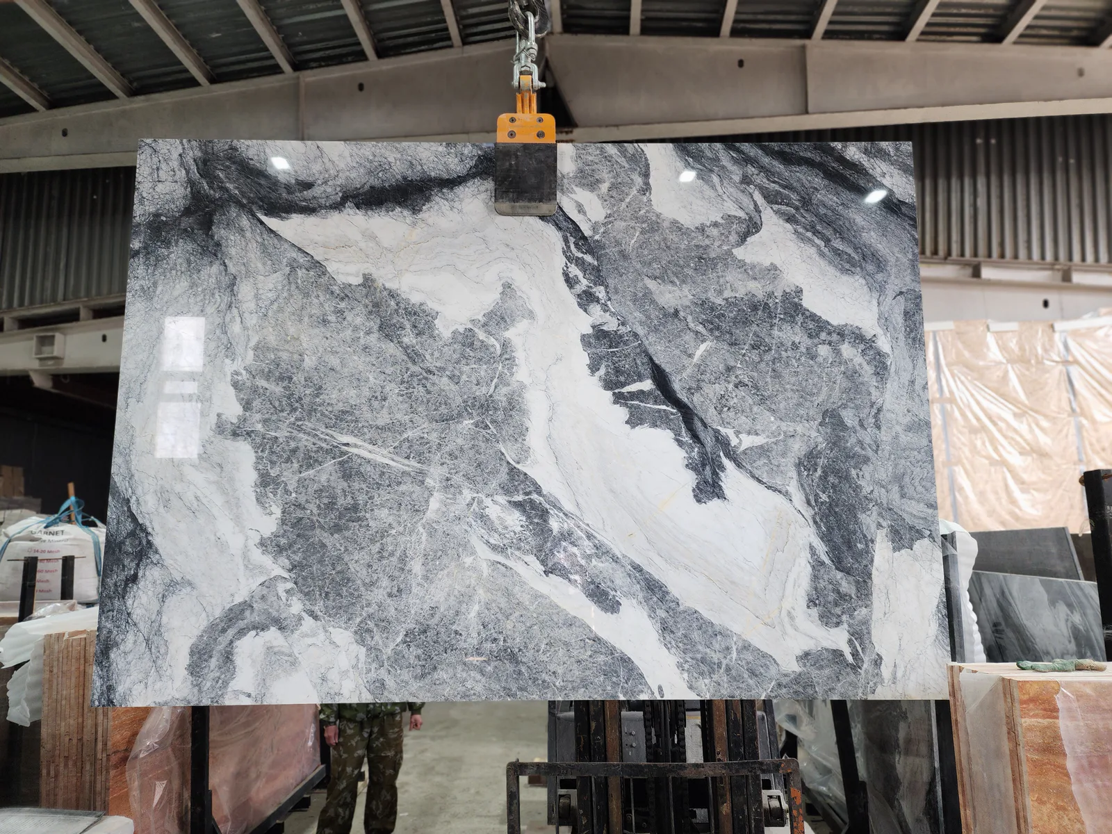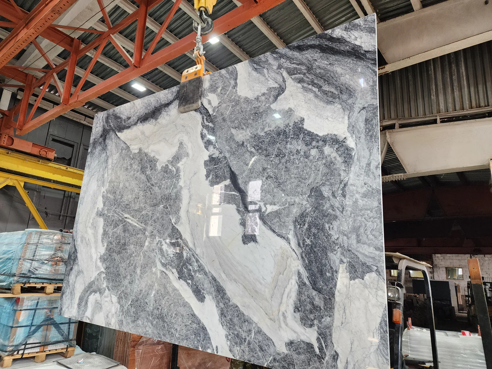 ГранитПанда А — контрастный чёрно-белый камень. Партия А отличается соотношением белых и чёрных зон. Каждый слэб — уникальный рисунок.