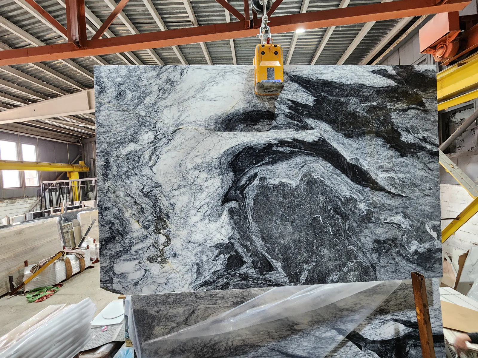 ГранитПанда В — другое соотношение чёрного и белого по сравнению с партией А. Чуть больше чёрного, чуть более драматичный.