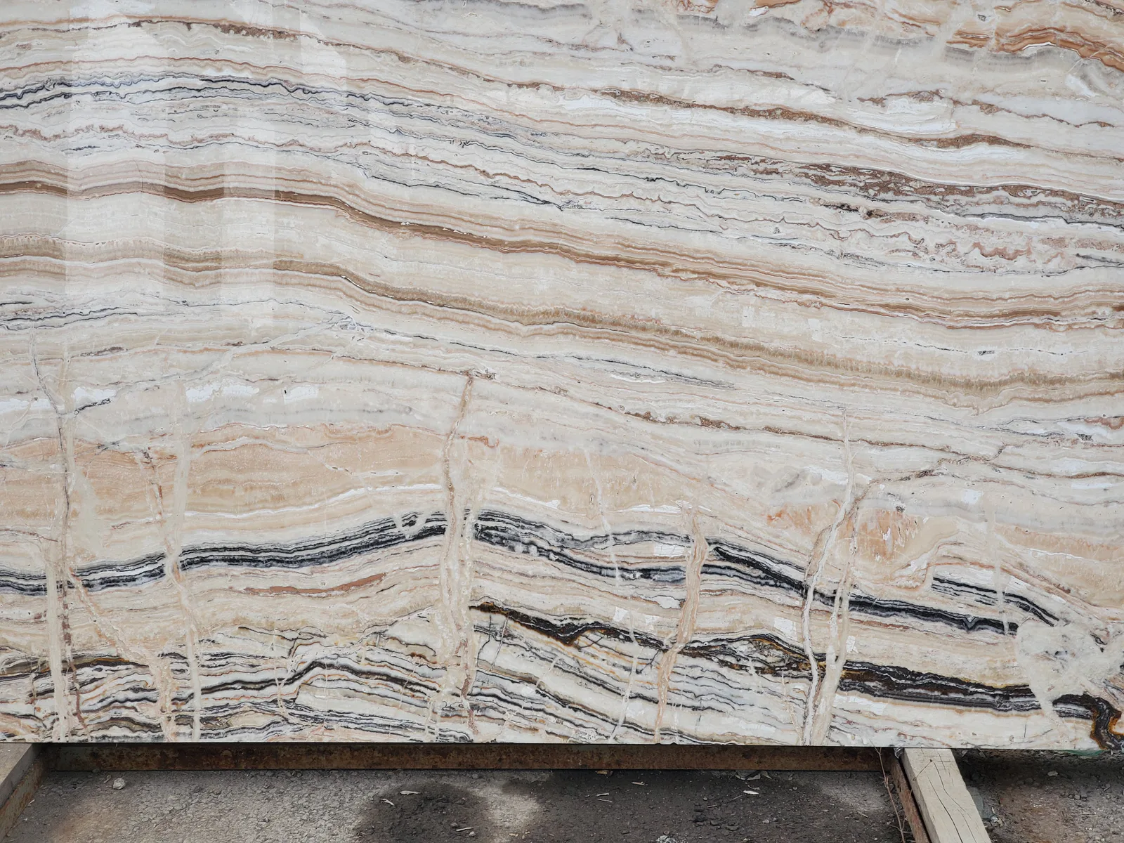 ГранитТраоникс — камень на стыке травертина и оникса. Необычная текстура, полупрозрачные зоны. Редкий камень.