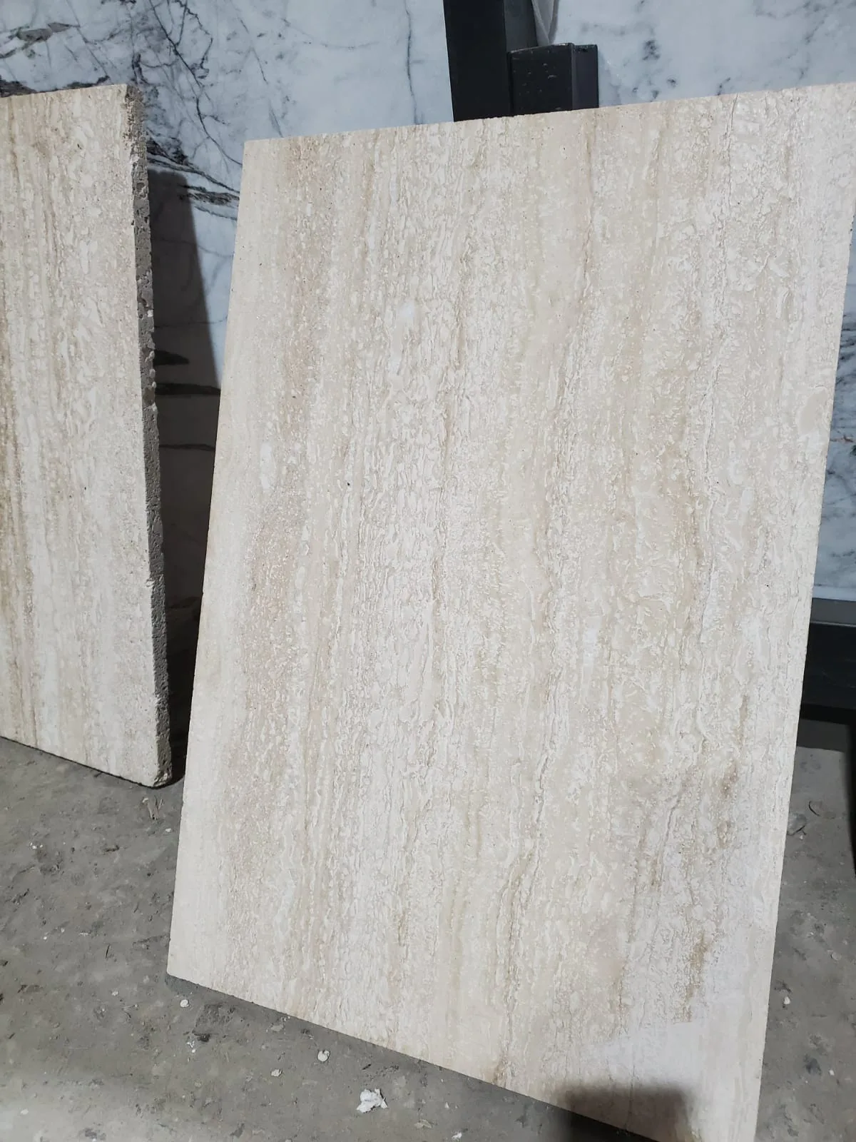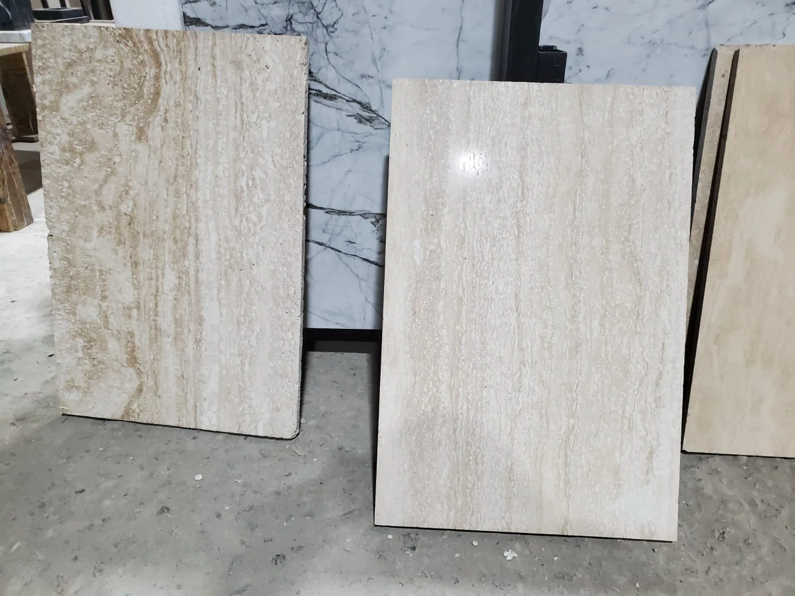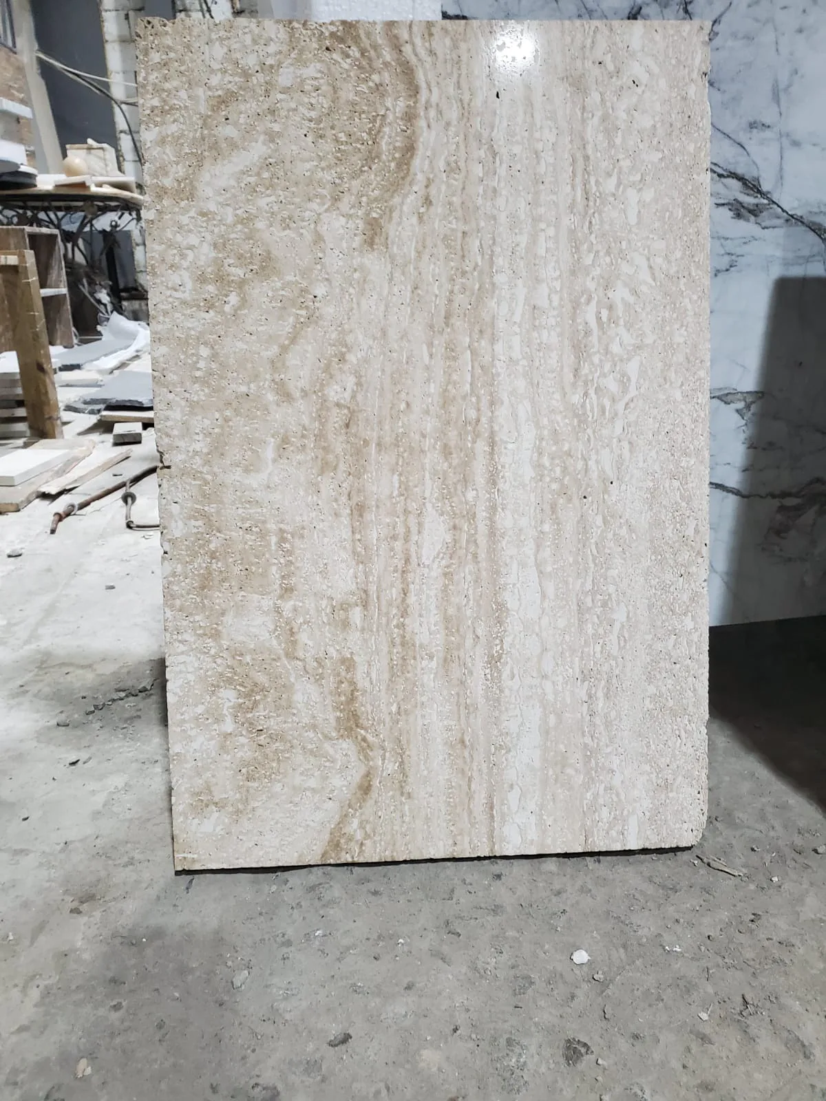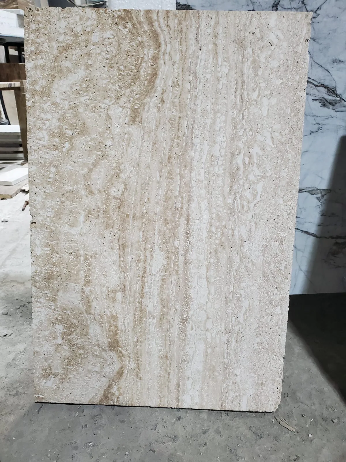 ТравертинТравертин Классик в плитах — бежевый, заполненный, полированный. Готовые плиты стандартного размера, не нужна нарезка. Быстрый монтаж, минимум отходов.